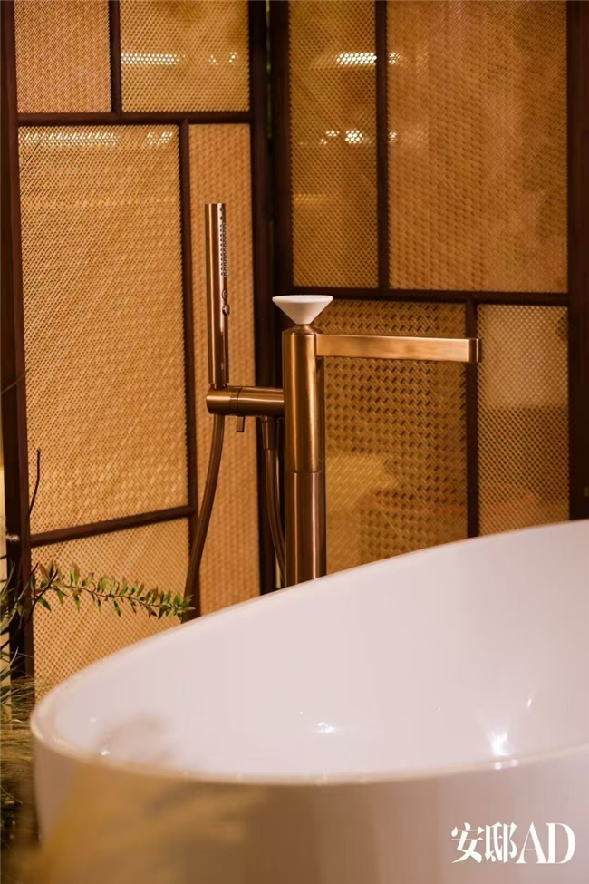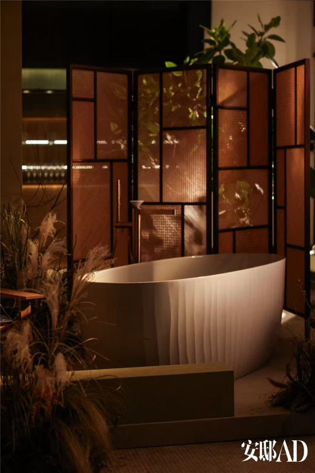 在本届AD Corner展区,科勒携两款代表性卫浴作品登场,来自科勒高端产品线——科勒精选(Kohler Exquisite)的旭珂1.7米椭圆形清雅石纹理浴缸(风舞漫沙),以及芮怡落地式浴缸花洒龙头。作为本次“东方自然之韵”主题展陈的重要一环,科勒展区以松竹植艺与大地色系构筑出温润的空间秩序,步入其间,能在光影流动中感受到自然的呼吸节奏。旭珂浴缸、芮怡龙头的材质、线条及水感与空间相互映衬,共同营造出流动而宁静的东方意境。